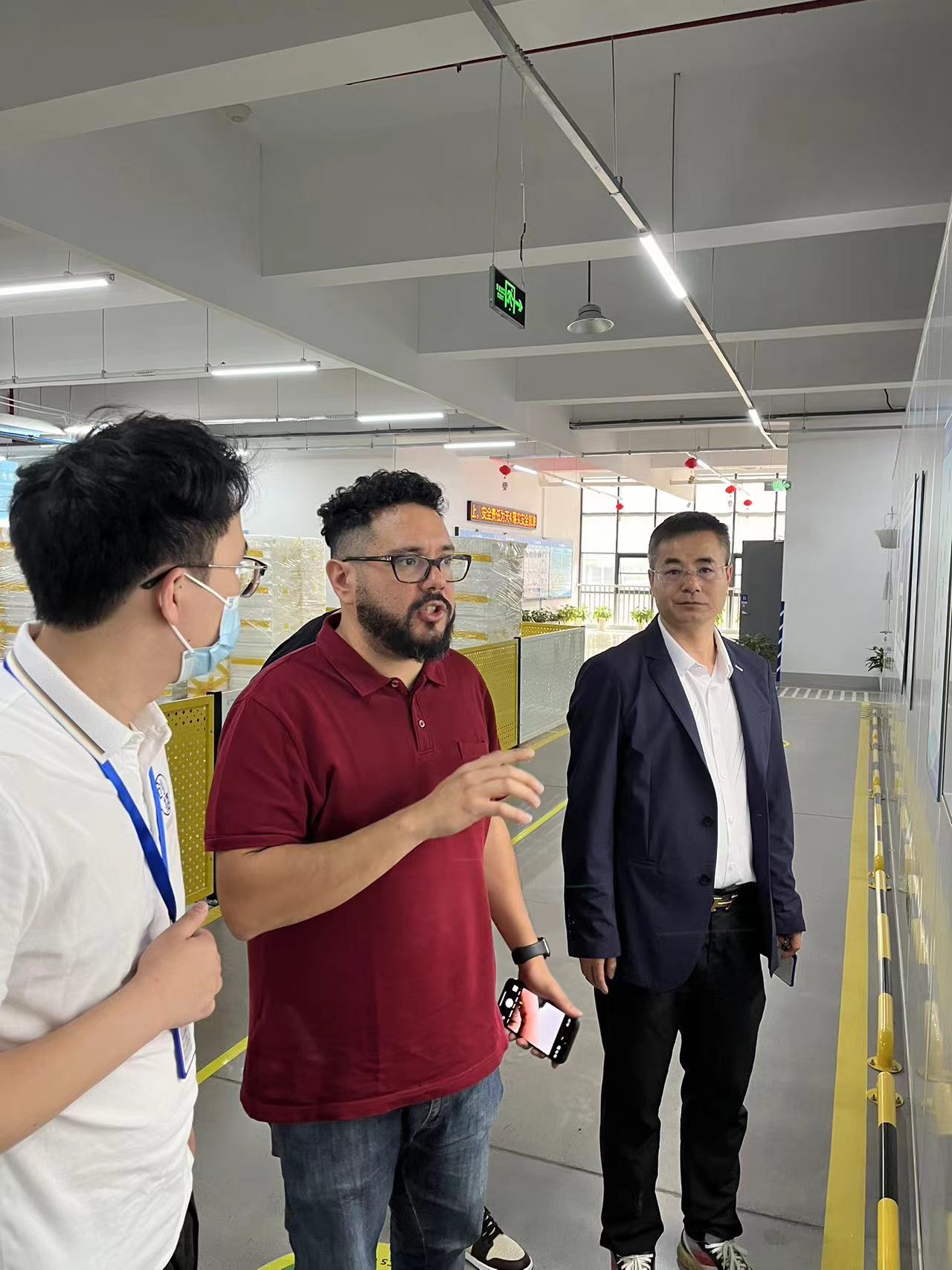 接下来,我们一起带领客户参观了我们的工厂,在企业文化展示墙那里,客户对我们的公示栏提出来表扬,并且,我们的工单系统成功引起了他们的注意,在介绍完功能后,他们对此也是连连称赞。